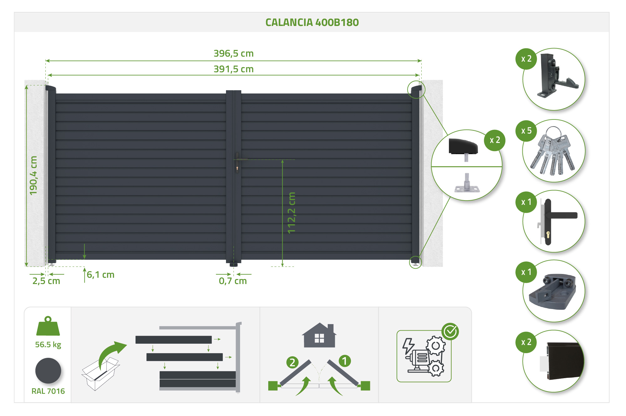 CALANCIA 4 m aukščio vartai, 180 cm aukščio, pilko aliuminio
