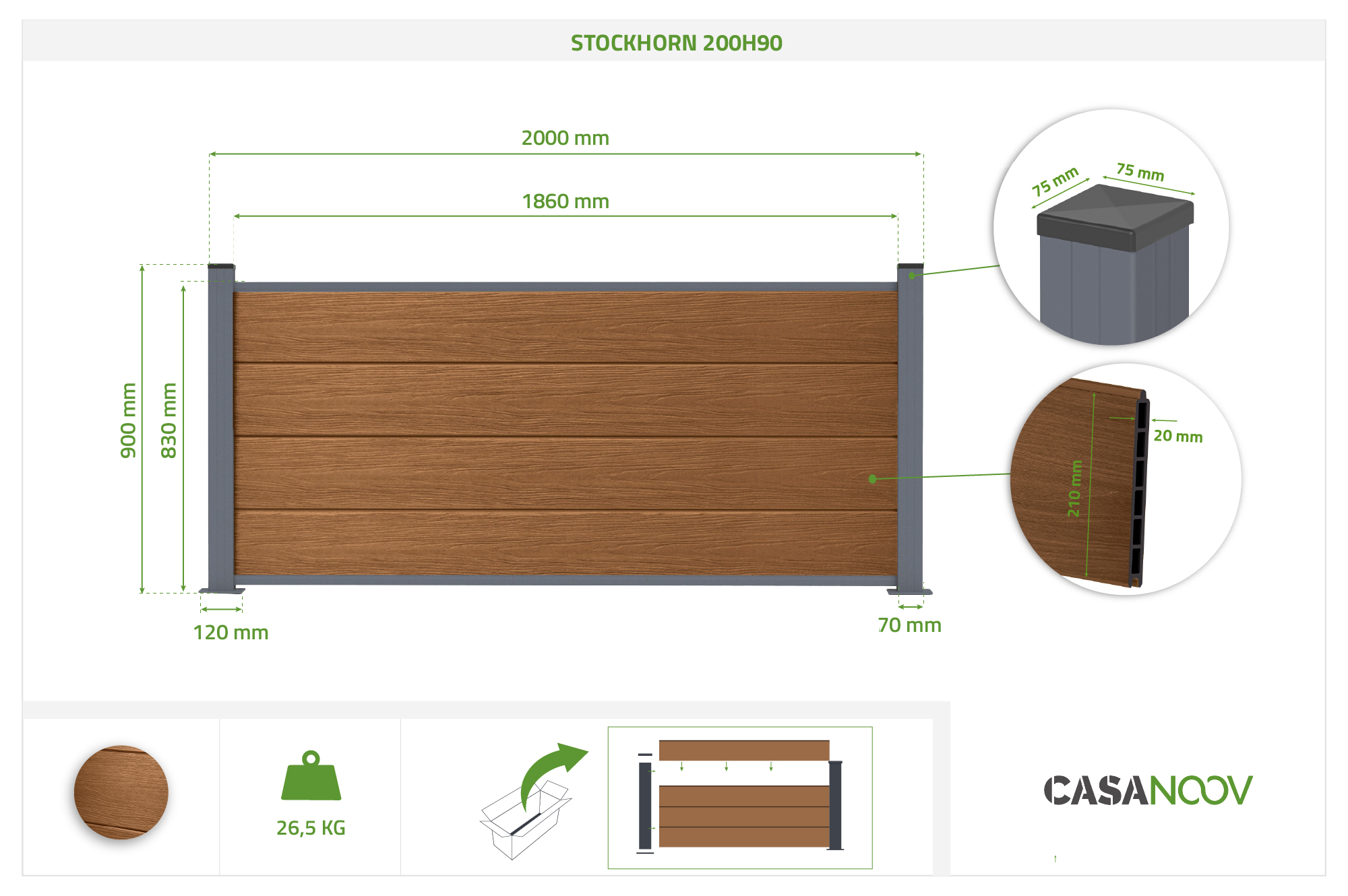 Kompozicinė tvora 2 m STOCKHORN, aukštis 90 cm, ant tikmedžio plokštės