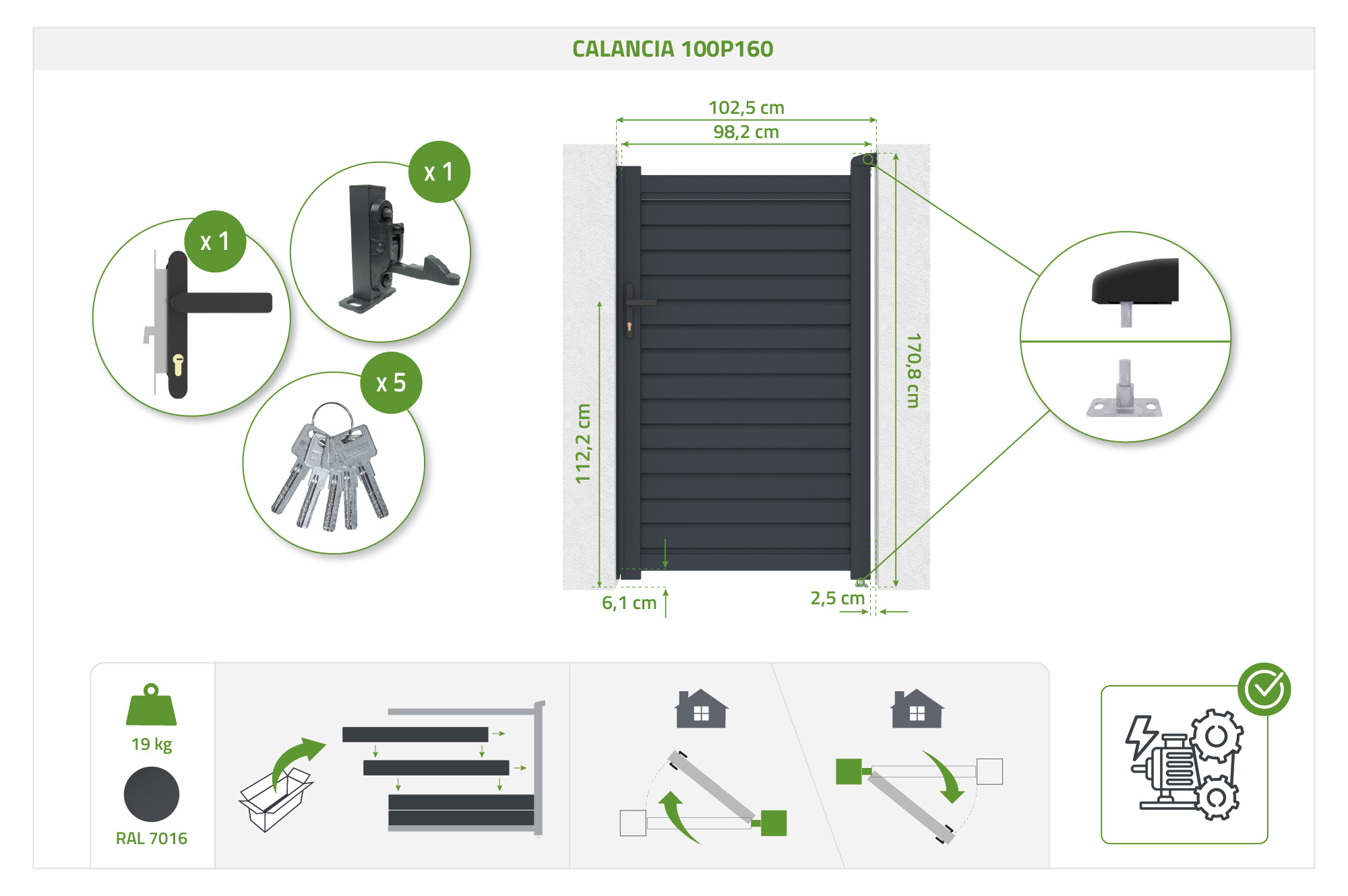 Vartai CALANCIA 1m, aukštis 160cm, pilki aliuminiai